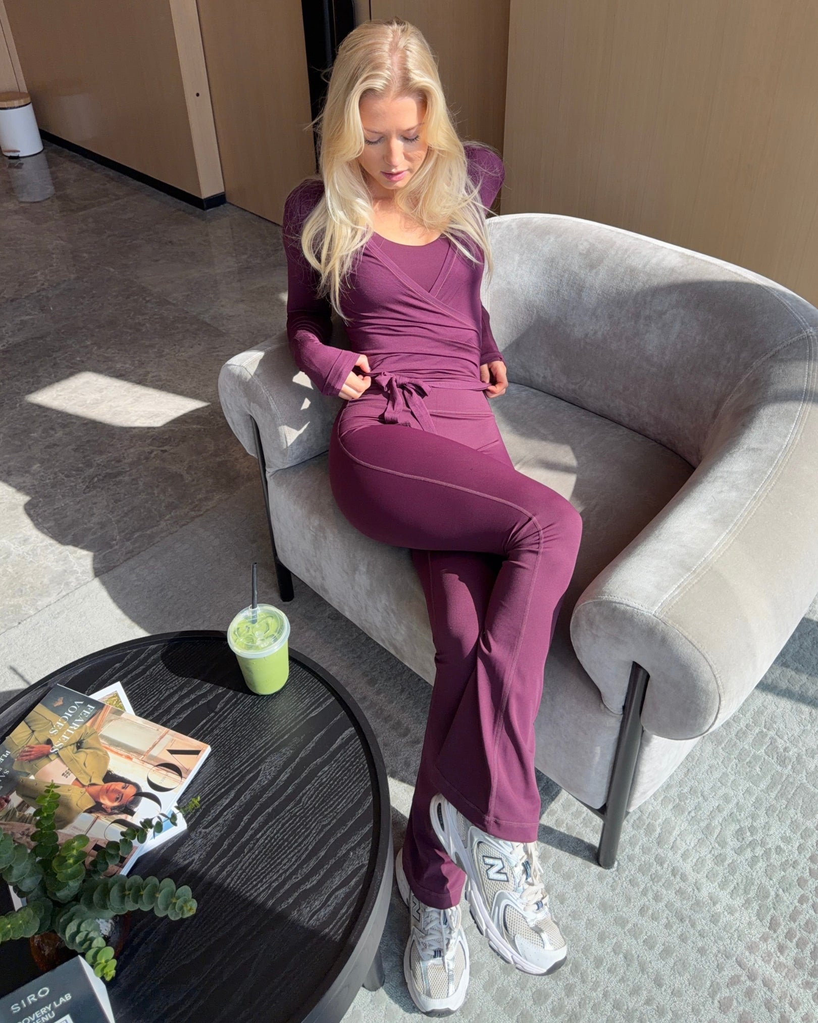 Vores eksklusive stof er designet til at give en ultra-glat følelse med den perfekte balance mellem støtte og fleksibilitet. Det bevæger sig ubesværet med din krop og giver uovertruffen komfort, uanset om du presser dine grænser eller tager et øjeblik til at slappe af.